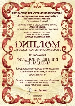 Поздравляем лауреатов игры-викторины по музыкальной литературе и Филонович Е.Г. с победой! Поздравляем учащихся игры-викторины по музыкальной литературе "По дороге знаний" и Евгению Геннадьевну Филонович! Молодцы! Фотогалерея 31.03.2026 09:50 Администрация